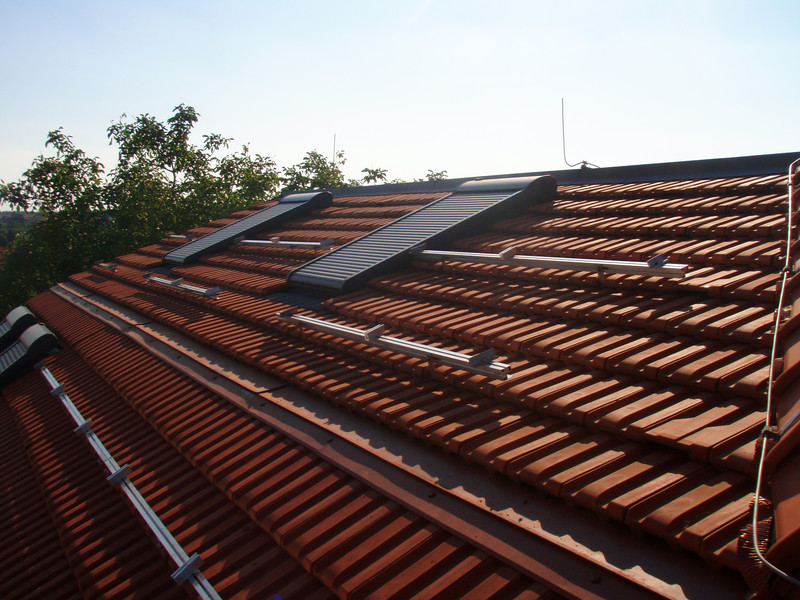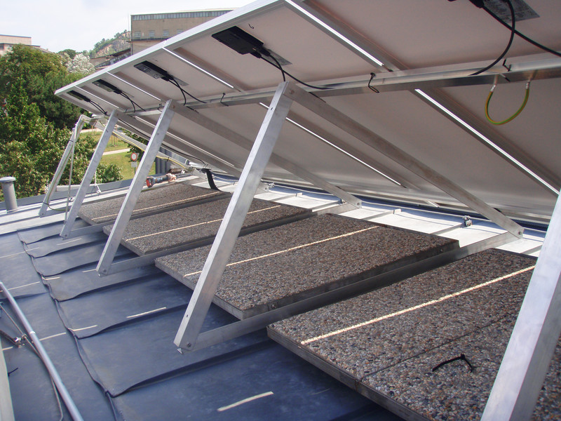 Sonstiges: Anlage dachpararellgeführt und aufgeständert auf Blechdacht mit Beschwerungsplatten